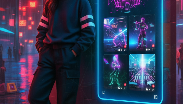 AI TikTok Poster-The image above is an example of a cinematic AI TikTok poster: neon-lit city background, a profile display and a creator styled like a poster. The following article explains what AI TikTok posters are and how you can create your own.